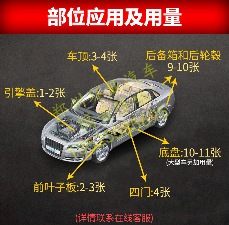 鄭州汽車隔音降噪全車四門隔音底盤頂棚四輪后備箱葉子板隔音棉