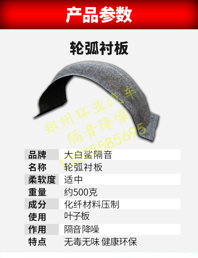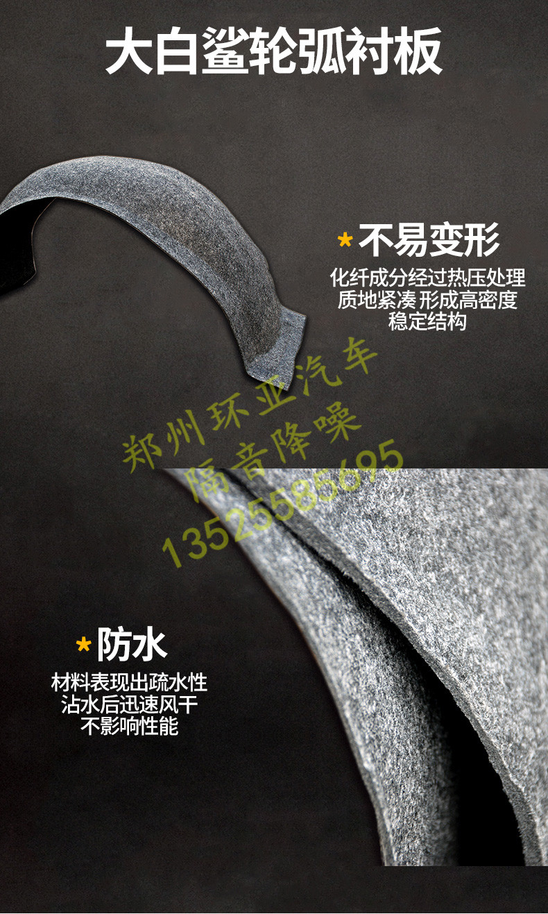 鄭州汽車隔音降噪大白鯊輪弧襯板葉子板防水耐磨彈性絨面緩沖撞擊