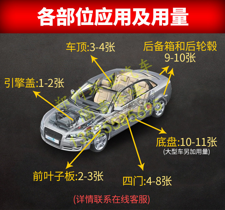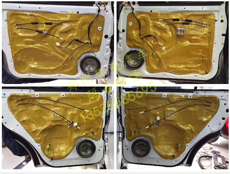鄭州汽車隔音降噪大白鯊黃金甲止震條板四門前腳踏位金鯊實體店