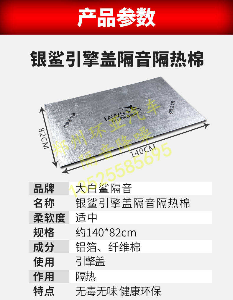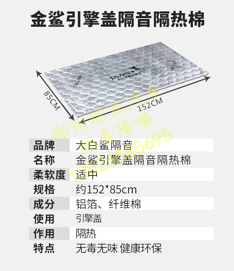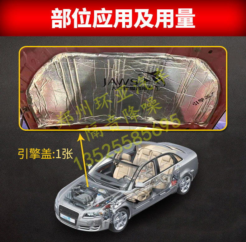 鄭州汽車隔音降噪大白鯊吸音保護漆面耐高溫發(fā)動機引擎蓋隔熱棉