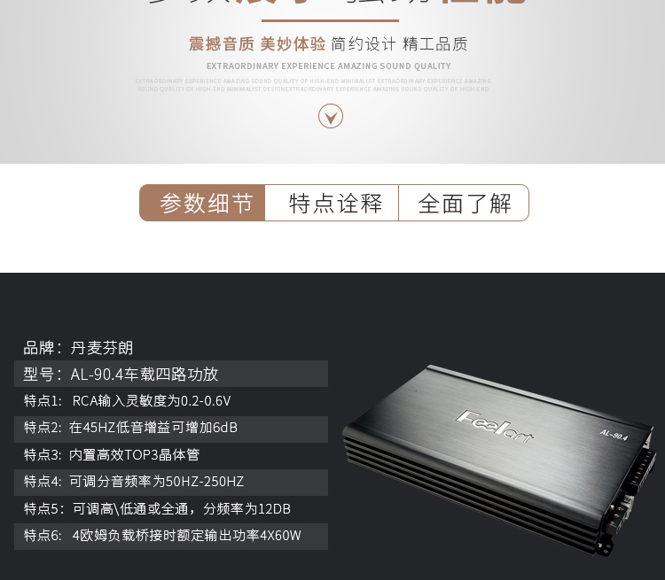 鄭州汽車音響改裝丹麥芬朗AL-90.4大功率4路功放帶喇叭低音炮