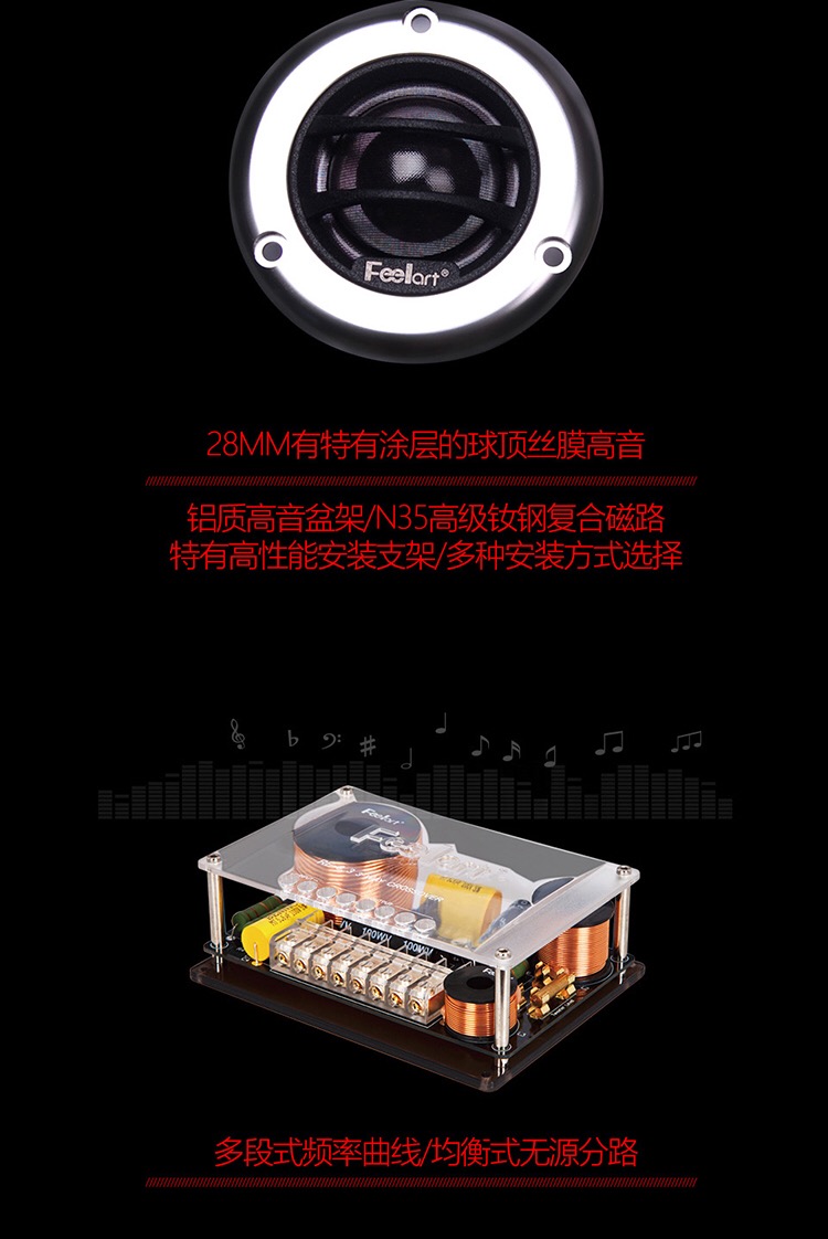 鄭州汽車音響改裝丹麥芬朗re6.3三分頻喇叭倒模高中低音分頻器