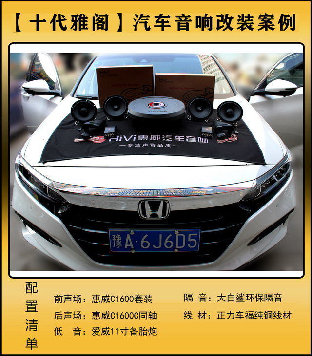 [鄭州環(huán)亞]2019年10月4日本田十代雅閣汽車音響改裝案例
