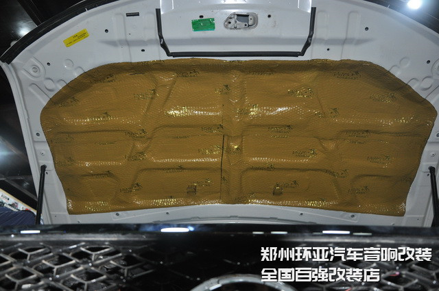 原車的引擎蓋不僅會產(chǎn)生振動噪聲,同時發(fā)動機工作產(chǎn)生的熱量,也會加速引擎蓋漆面的老化速度。改裝技師先使用大白鯊黃金甲,對引擎蓋做了止振處理;然后使用大白鯊引擎膜,對引擎蓋做了隔熱處理,從而起到了保護引擎蓋的目的。