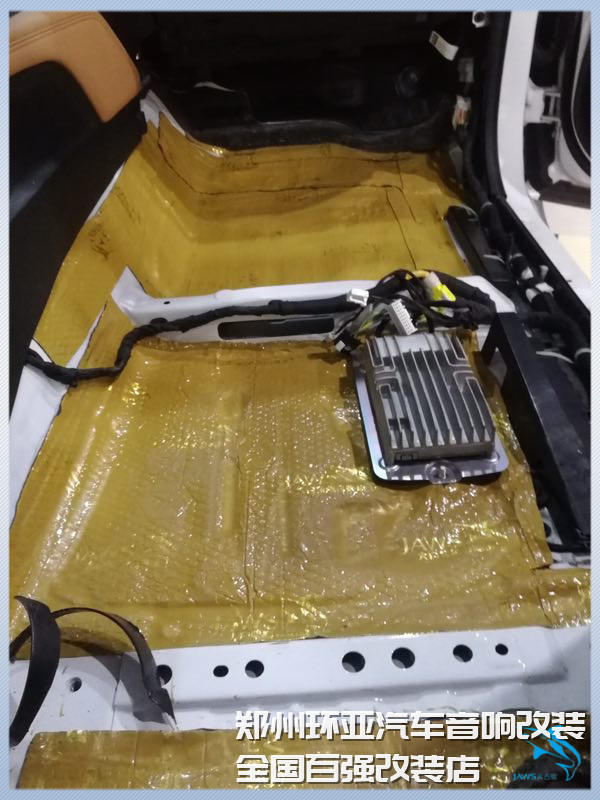 底盤和尾箱在汽車行駛的時候,也會產(chǎn)生較大的共振噪聲。所以鄭州環(huán)亞的改裝技師,先使用大白鯊金鯊對汽車的底盤做了第一層的止振處理,然后又使用大白鯊白棉對底盤和尾箱做了第二層的密封處理,從而有效的減少了底盤和尾箱產(chǎn)生的共振噪聲。