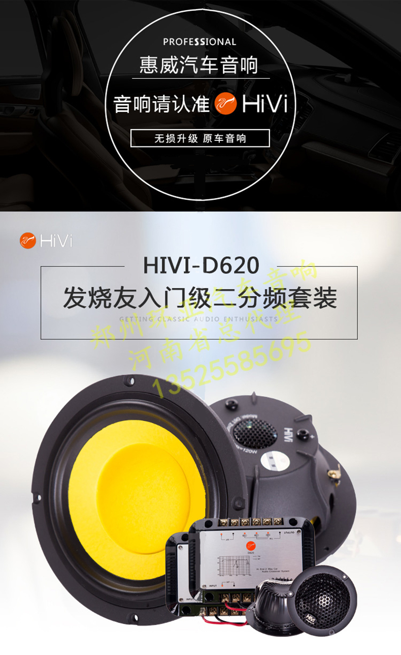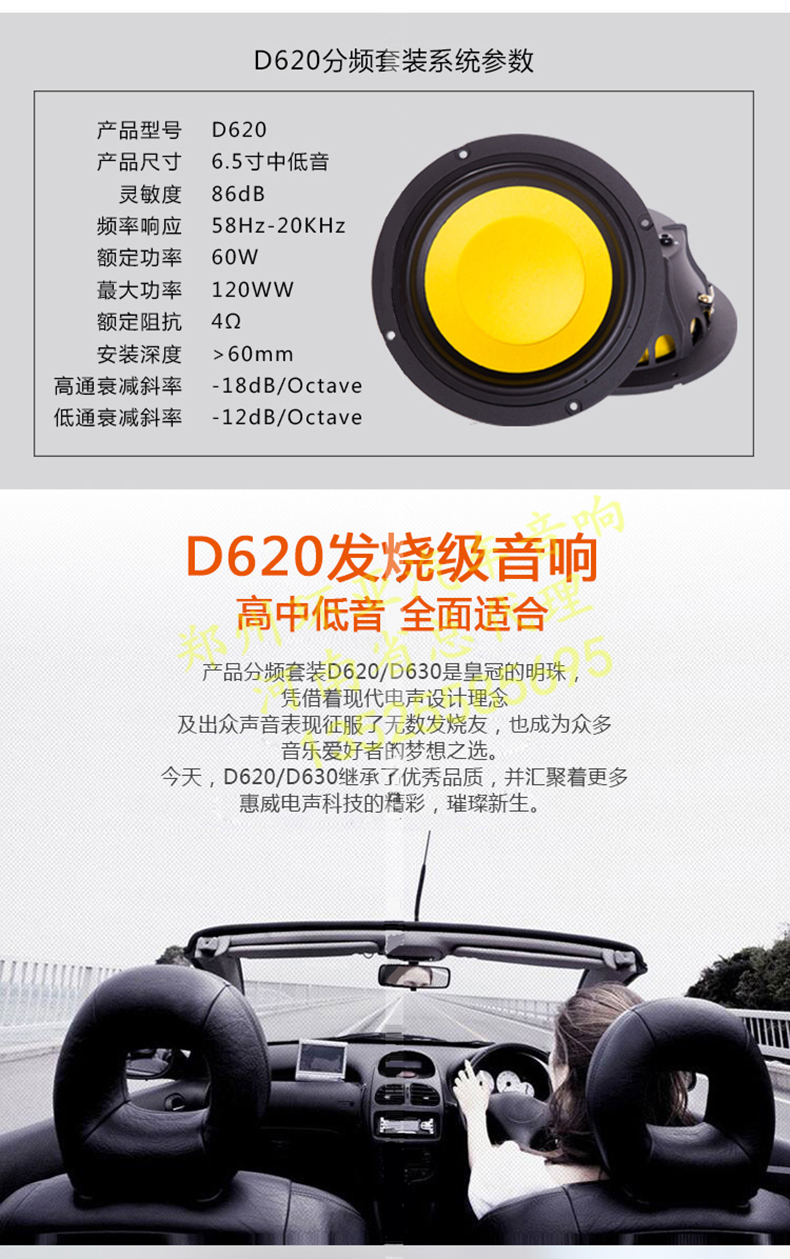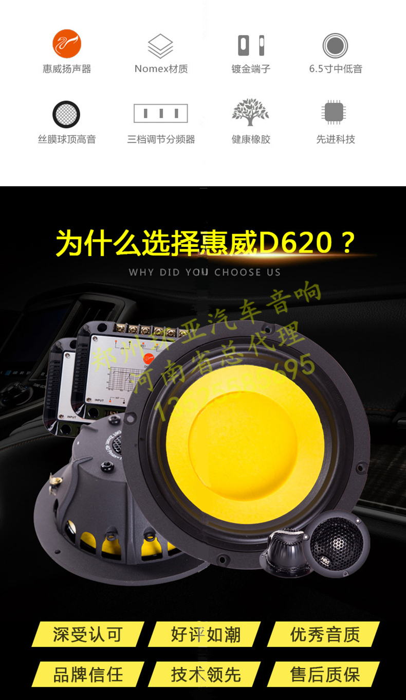 惠威汽車音響改裝D620套裝二分頻6.5寸喇叭車載音響升級