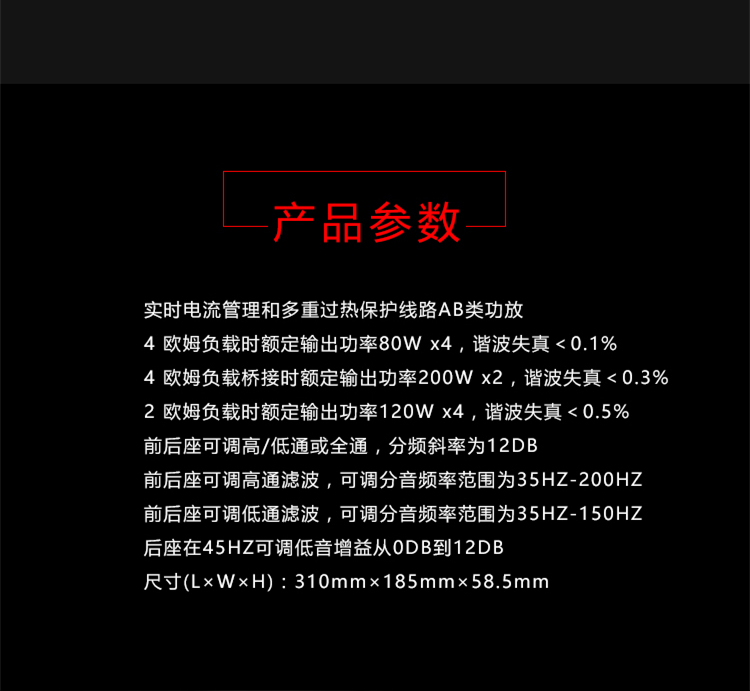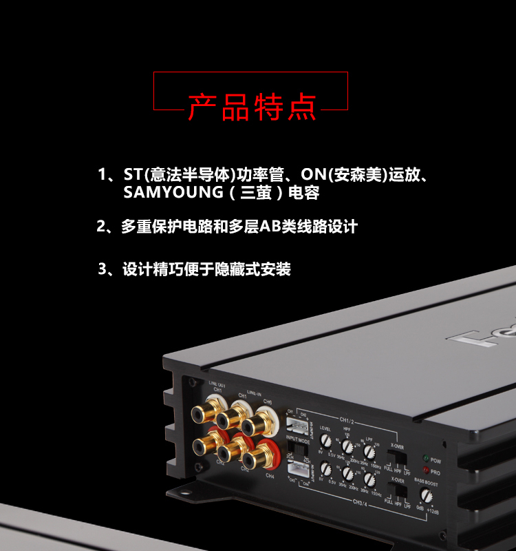 鄭州汽車音響改裝丹麥芬朗汽車功放AL-75.4四聲道大功率汽車功放