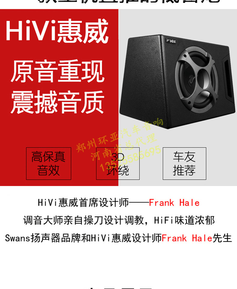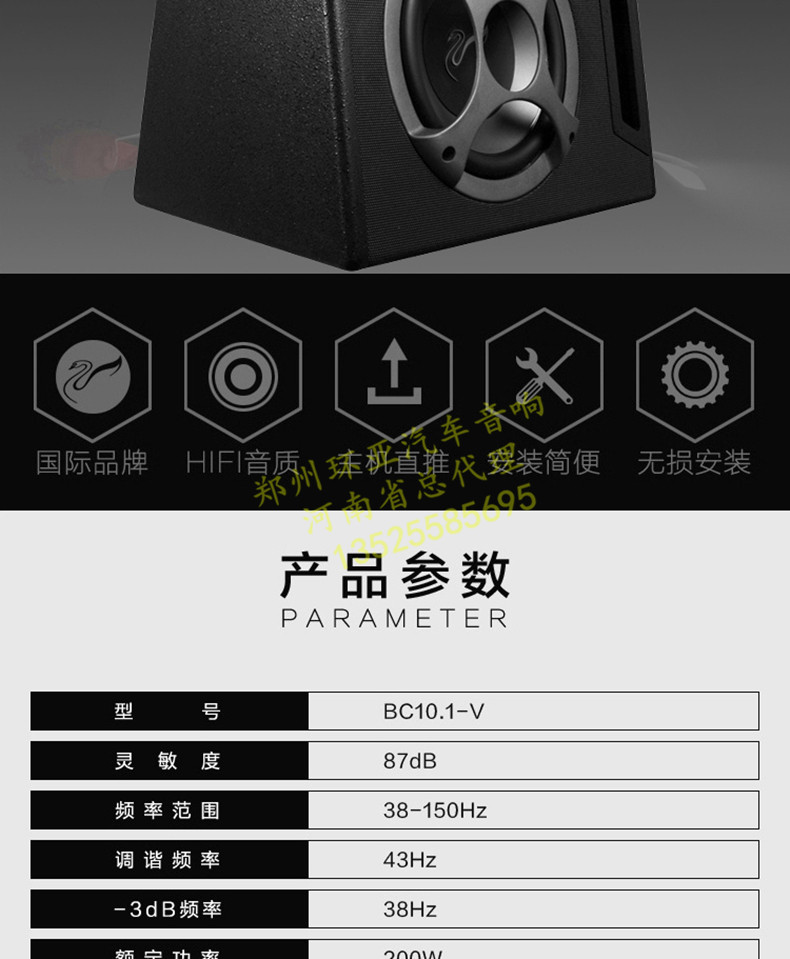 惠威汽車音響改裝BC10.1-V低音炮10寸有源低音喇叭鄭州實體店