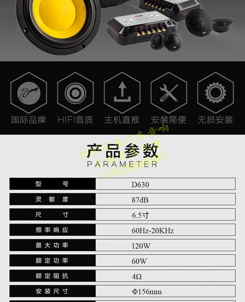 惠威汽車音響改裝D630套裝三分頻喇叭揚(yáng)聲器升級(jí)6.5寸車載音箱